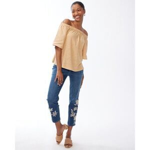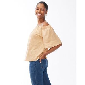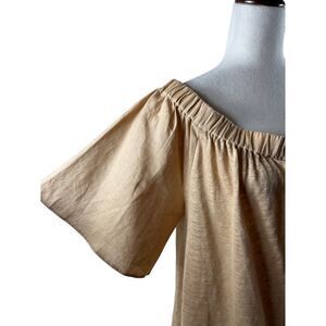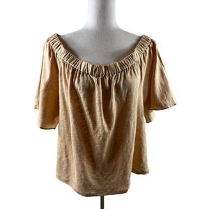 Chico's Linen Off Shoulder Ruffle Sleeve Tee Blouse Tan Size 2 Large Bohemian