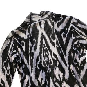Chicos Linen Open Cardigan Sweater Size 1/M Abstract Black White
