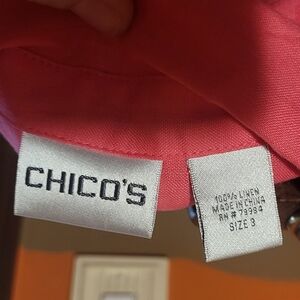 Chicos Linen Pink Button Front 3/4 Sleeve Shirt Women Size 3 (XLarge) Pre-owned Chest Measurement is 24"