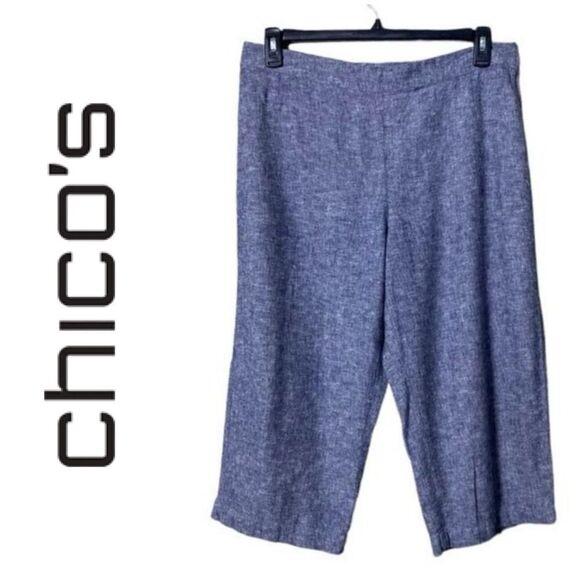 Chico’s Linen Pull On Women’s Pants Wide Leg Cropped Size 2.5 Capris Beachy