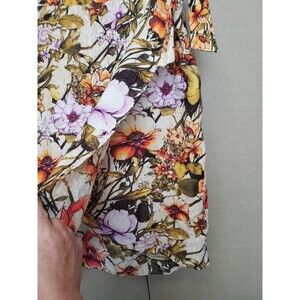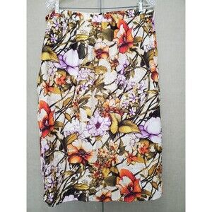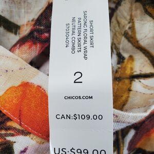This is a Chico's Linen Sarong Floral Faux Wrap Side-Zip Midi Skirt Size 2 Large NWT