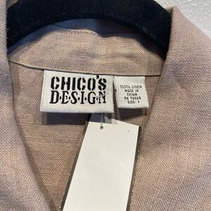 Chico’s Linen Shirt Jacket Size 1 US M 8-10 Beige Tribal Artsy Long Sleeves