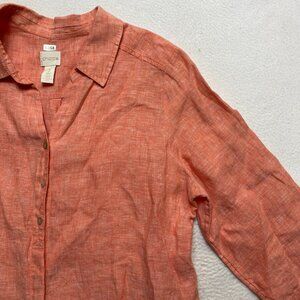 Chicos Linen Shirt Womens 2 Orange 3/4 Sleeve Button Up
