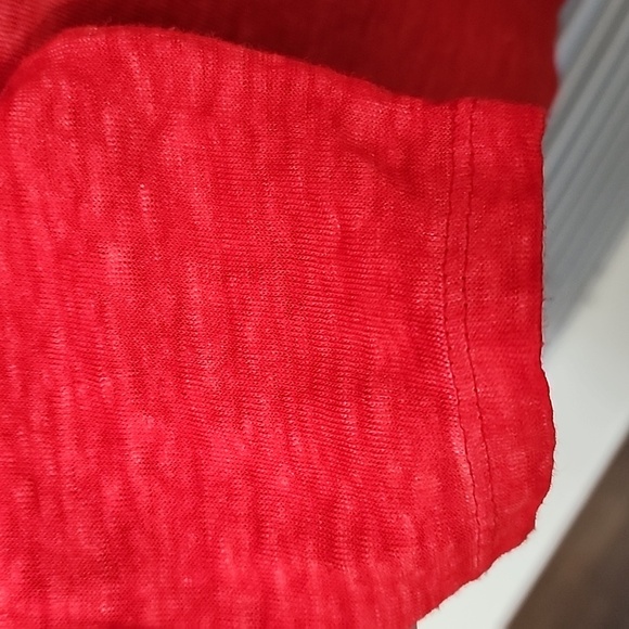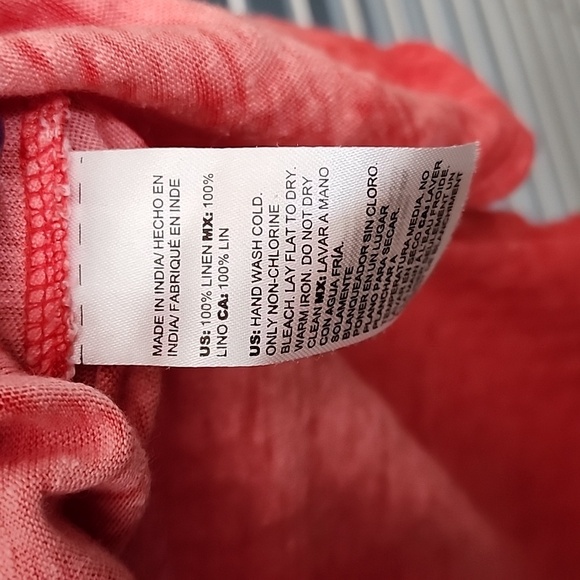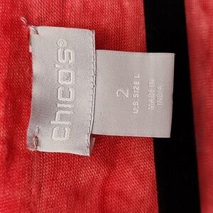 Chicos Linen Split V Neck Tunic Size Lg Orange Red Slub Knit Long Sleeve Summer