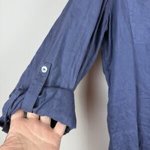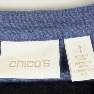 Chico's Linen Top Women 1 US M Blue Sequin Button Up Roll Tab Crochet Beach Boho