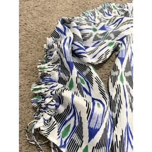 Chicos Linen Tribal Print Jeweled Neckline Ruffle Drawstring Sleeves Size 0.5/6
