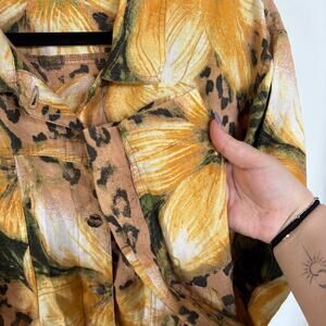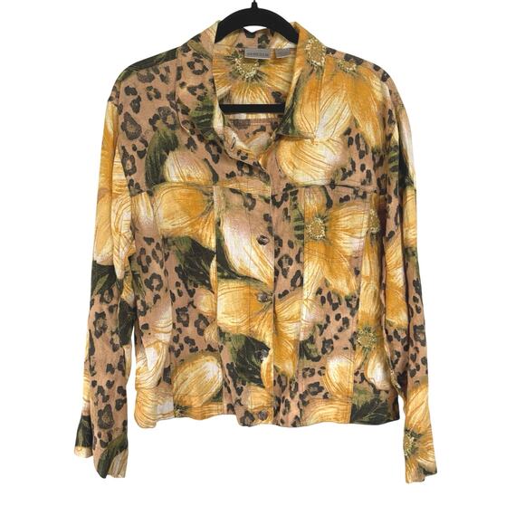 Chico's Linen Yellow Animal Print Floral Lightweight Jacket Maximalist