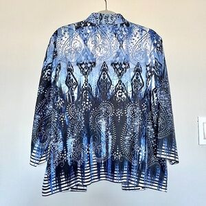 Chico's Linen-Blend Blue Ombre Sequin Paisley Open front Jacket Size 3