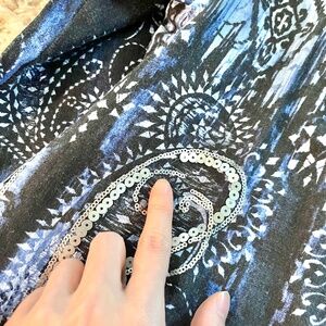 Silver sequined paisley print