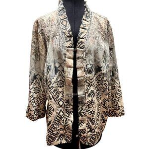 Chico’s Linen/Nylon Blazer Sz3(16) Grey/Tan