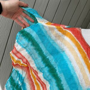 Designed with a boxy oversized fit, open sides, and drapey shape, this top works beautifully over swimwear, tanks, or as a lightweight resort layer. It’s tagged S/M, but the generous cut fits a wide range of sizes depending on your desired look.