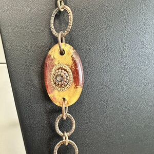 Chico's Long Beaded Chain Link Ceramic and Metal Statement Necklace