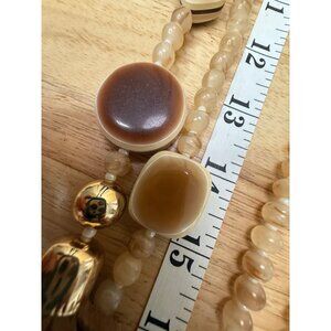 Chicos Long Beaded Necklace W/ Leather Tassel & Gradient Brown Accents