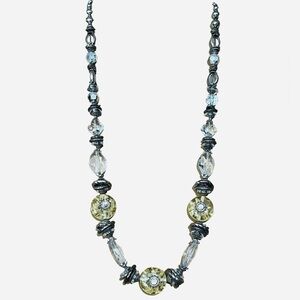 Chico's Long Chunky Beaded Necklace Silver Tone Citrine-Like Stones Crystal