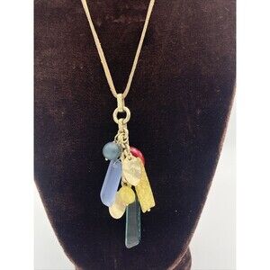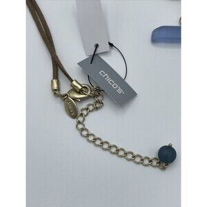 Long leather cord necklace measuring 3 2 inches with a 3 1/2 extender has a bright fun Pendant with multiple size and colored charms. Brand new necklace by Chicos with tags. Comes from a smoke free home. Retail cost $59.50