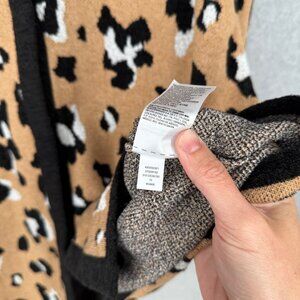 Chicos Long Line Knit Cardigan Sweater Size 1/M Animal Print Neutral Hood Cozy NEW