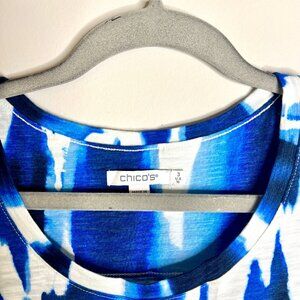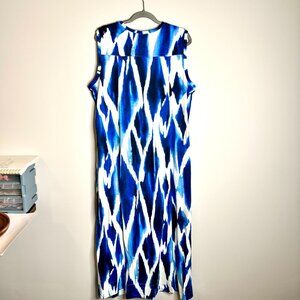 Chico's Long Maxi Shift Dress Bohemian Tie Dye Bright Blue Resortwear Beach 16