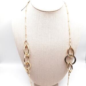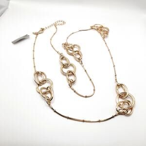 Chico’s Long Necklace NWT 48” Gold Tone Snake Chain with Interlocking Loops