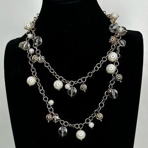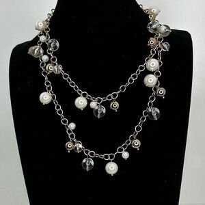 Chico's Long Necklace Women's 38" Gold-tone Faux Pearl Charm Single Strand Chain
