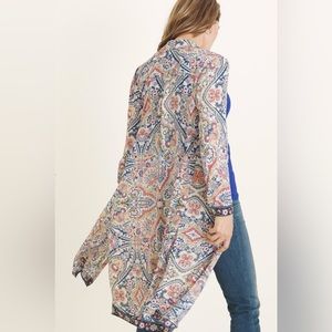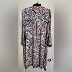 Chico’s Long Paisley Tunic Sz 3 Dress Duster Sweeping Effortless Office Casual