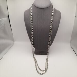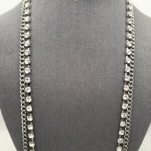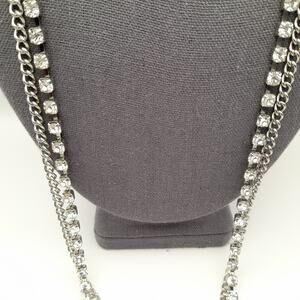 Chico's Long Silver Tone Two Strand Clear Rhinestones Curb Chain 38" Necklace