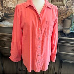 Chicos Long Sleeve Button-down Peach shirt, size 2 (L/12)