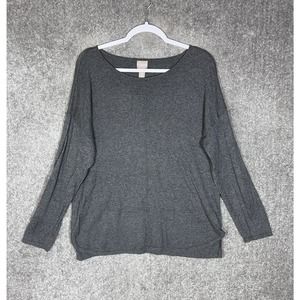Chicos Long Sleeve Drop Shoulder Knit Sweater Womens Size 2 US Size 12 Gray