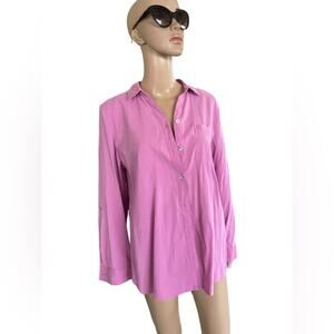 Chicos Long Sleeve Shirt Womens 1P Fuchsia Modal Button Down Classy