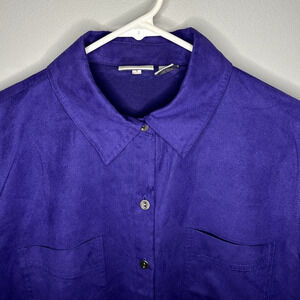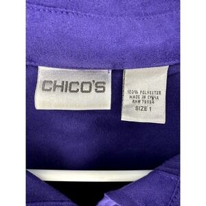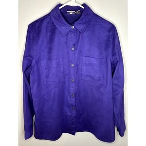 Chico's Long Sleeve Soft Suede Like Material Chest Pocket Button Up Shirt Top Blouse Bright Purple Women's Plus Size 1- Vanity sizing- like a size medium