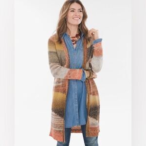 Who knew a cardigan could be such a conversation-starter? All eyes will be on this design, with its spacedye yarn pattern in a warm palette with a luxe length. Dress it up with jewelry and a belt for the office, or lounge on the weekends in chic style.