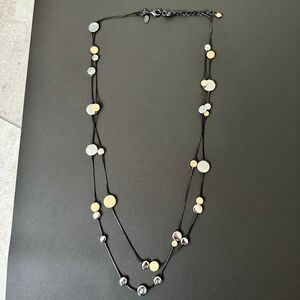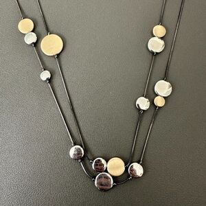 Chico's Long Two Tone 2 Strand Coin Disc Round Necklace. Good condition. 36 inches. Black chain.