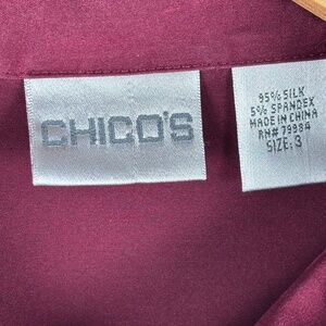 Chicos LongSleeve Button Down Shirt Stretch Silk Sz 3= XL Burgundy Classic Party