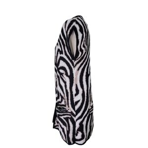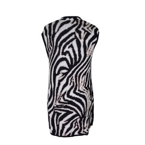Chicos Longline Cardigan Size 0 S 4 Pockets Open Front Cap Sleeve Animal Print