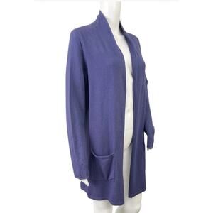 Chicos Longline Cardigan Size 3 (XL) Purple Knit Beaded Sleeves Duster Pockets