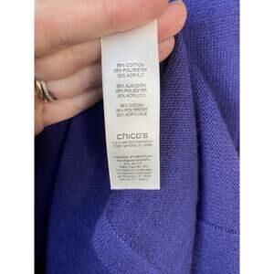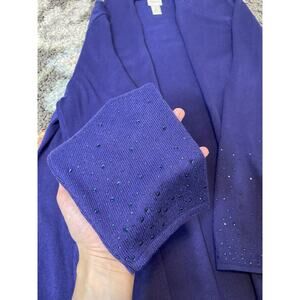 Chicos Longline Cardigan Vanity Size 3 or US XL. Purple Knit w/ 2 front pockets & diamante stones at the wrist/cuff of the sleeve.