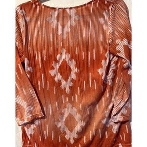 Women's Lot of 2 Chicos Tops. Size 2=12/14 Large. Pretty prints and colors just perfect for Spring. Orange Tribal Like Print and Paisley shades of green, pink, taupe. Elastic banded bottom.