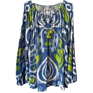 Chico's Lotus Bloom Peasant Top Regatta Blue Size XXL NWT