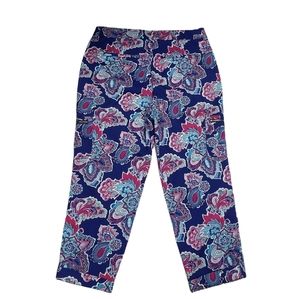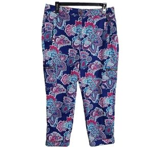 Chicos Luxe Floral Paisley Print Utility Cropped Pants Sz 1 US 8 Medium Stretchy