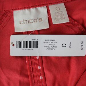 Chico's Luxe Twill Utility Jacket Malibu Punch zip snap front closure 0 4 S New
