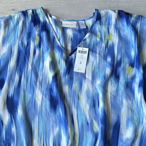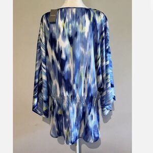 Chico’s Lynnea Tunic Top 2 3/4 Sleeve Smocked V-Neck Deep Ultra Marine Blue Nwt
