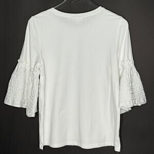 Chicos M Ruffle Bell Sleeve Top White Crewneck 3/4 Sleeve Cotton Blend Boxy