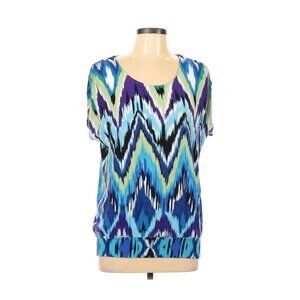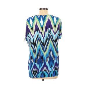 Chico's Major Sway Uma Blouse Size 2 (M) in a stunning chevron pattern features an elegant blend of blue, green, white, purple, and black.