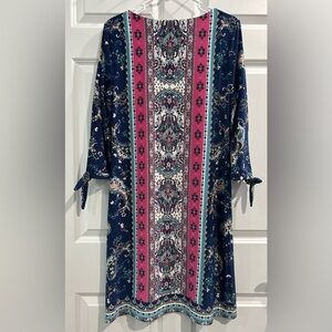 Chico's Medallion-Print Tie-Sleeve Dress Knee Length Stretch Shift Size M (8)