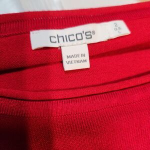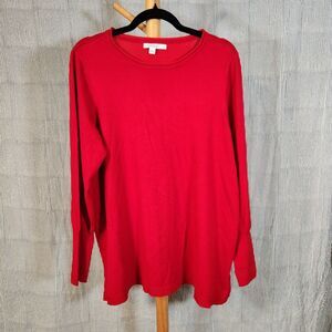 Chico's Medium $90 Red Rayon Blend Roll Collar Crewneck Pullover Tunic Sweater