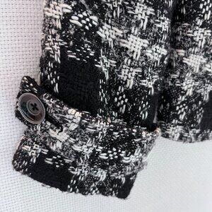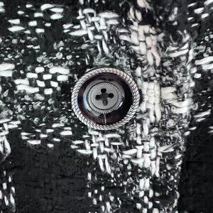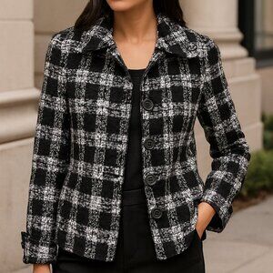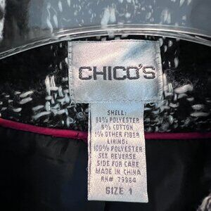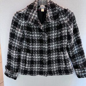 Chico's Medium Women's Black Plaid Tweed Blazer Jacket Button Front Career Chic