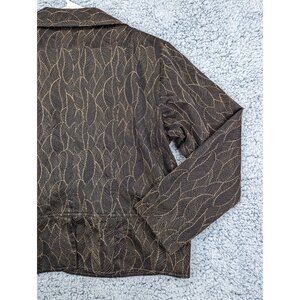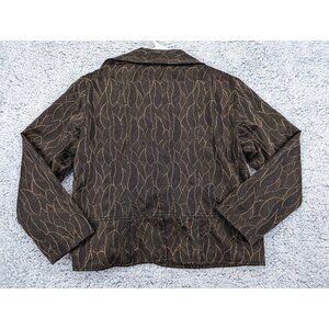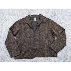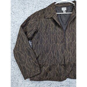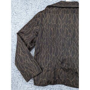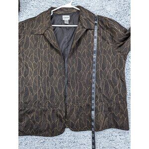 Chicos Metallic Dark Floral Blazer Size 3 / XL Open Front Embroidered Black Gold