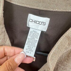 Chicos Metallic Embroidered Button-Up Jacket SZ 2 Beige Long Sleeve Cotton Blend