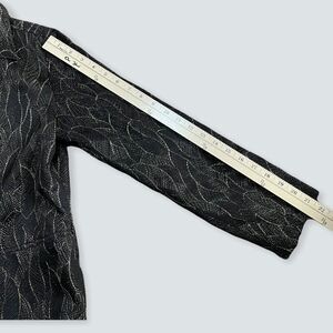 Chicos Blazer size 1 USA MEDIUM 8 Gorgeous bronze metallic embroidered leaves open front & lined. Jacket is beautiful/stunning. Condition: Pre-owned, but could be mistaken for new Color: Black, metallic bronze leaves Size: Chico's size 1, US Medium (8) Material: 100% Polyester (Dry Clean Only) Measurements: Pit to pit =21", Length =22.5", Shoulders: 16.5", Sleeve Length: 23.5" Features: Open front, back slit Damages: NONE visible