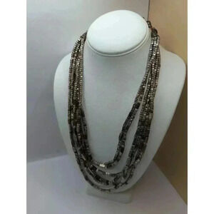 Chicos Metallic Multi Strand Necklace Statement Beaded Silver