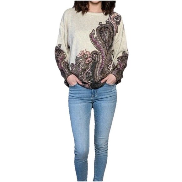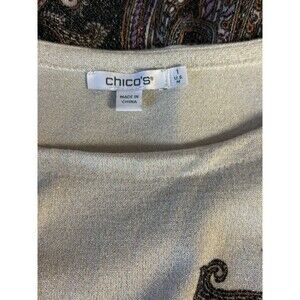 Chico's Metallic Paisley Knit Sweater Top Women's Size 1 Medium Cream Purple